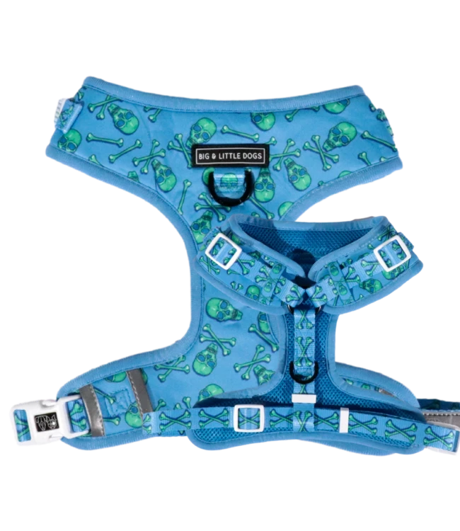 Introducing the BIG & LITTLE DOGS “Skulls & Bones” adjustable dog harness: