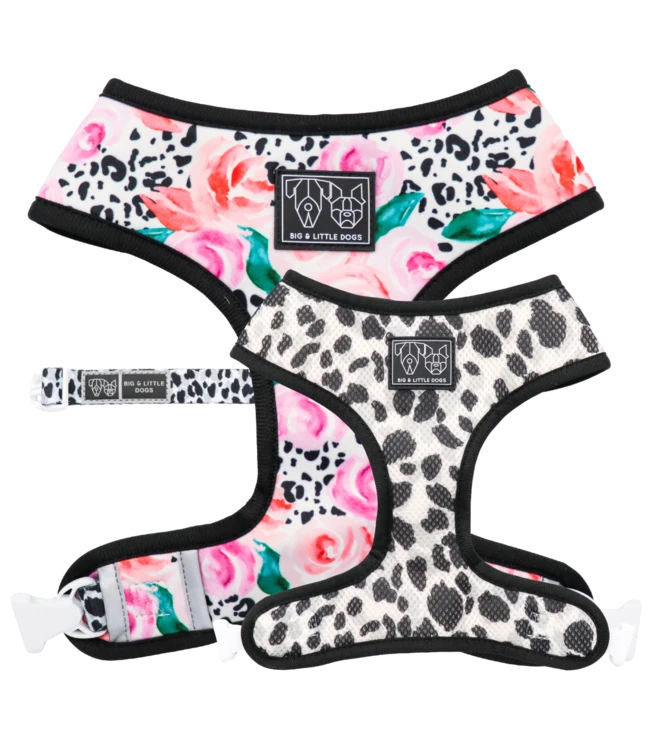 Introducing the BIG & LITTLE DOGS “Pretty as a Peony” reversible dog harness: