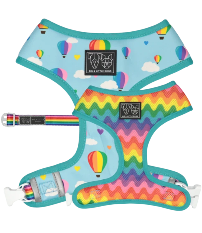 Introducing the BIG & LITTLE DOGS “Up, Up and Away” reversible dog harness: