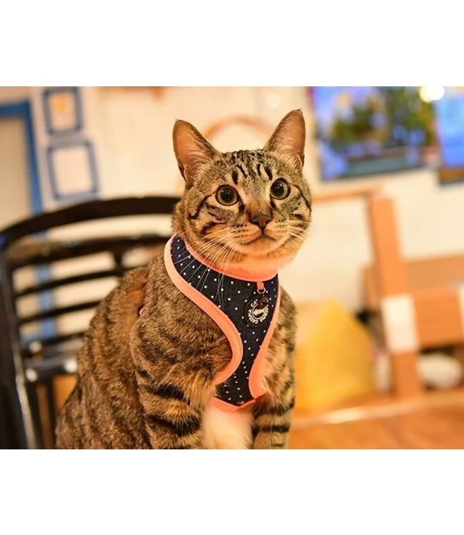 Dit zachte tuigje van katoen is het Cora Harness van Catspia. Een tuigje wat door zijn fijne pasvorm goed aansluit bij de kat . Het harnas is gemaakt van soepelvallende katoen. Dit maakt het tuig luchtdoorlatend dus geschikt voor in de zomer en winter. Het harnas is geschikt voor de grote en kleinere katten . U kunt het Catspia Cora Harness met behulp van de verstelbare buikriem passend maken voor uw kat. Aan de bovenzijde van het tuigje bevindt zich een D-ring waaraan u de lijn aan kunt bevestigen.