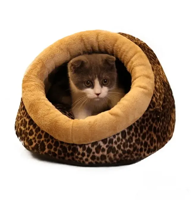 De Catspia Snuggle Leopard Cat Cave is verkrijgbaar in verschillende kleuren: Pink Leopard & Brown Leopard