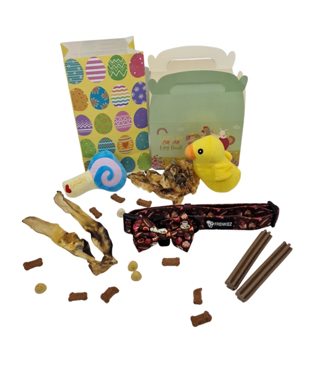 Geef uw hond iets extra’s deze paasdagen, en maak er een feestje van met de pasen goodie box van Frenkiez. Het ultieme geschenk voor de paasdagen!