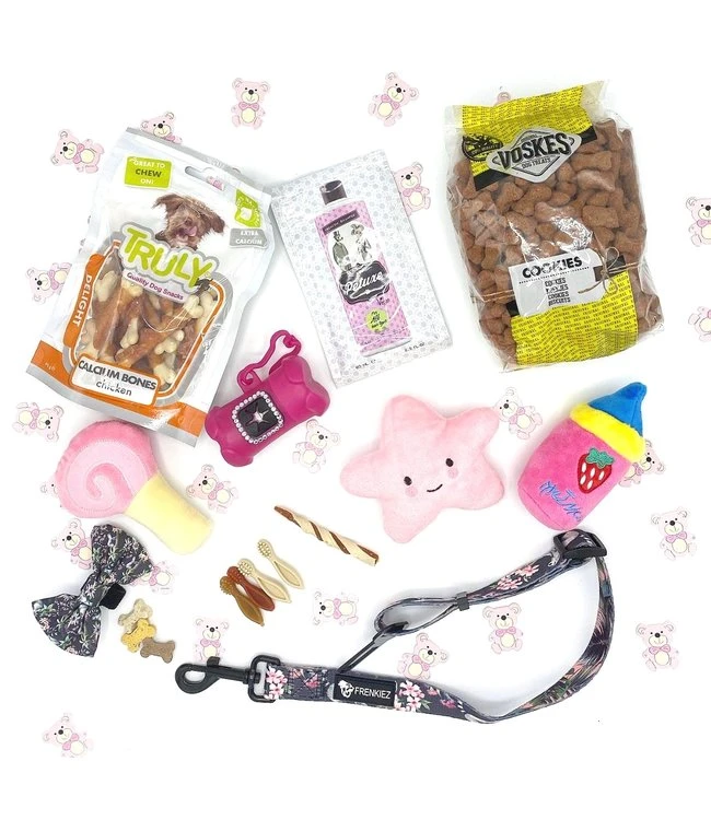 Dan hebben wij hier de uitkomst! De Frenkiez Puppyshower Giftbox, een zeer complete box, met allerlei super leuke items voor de nieuwe huisgenoot 🙂