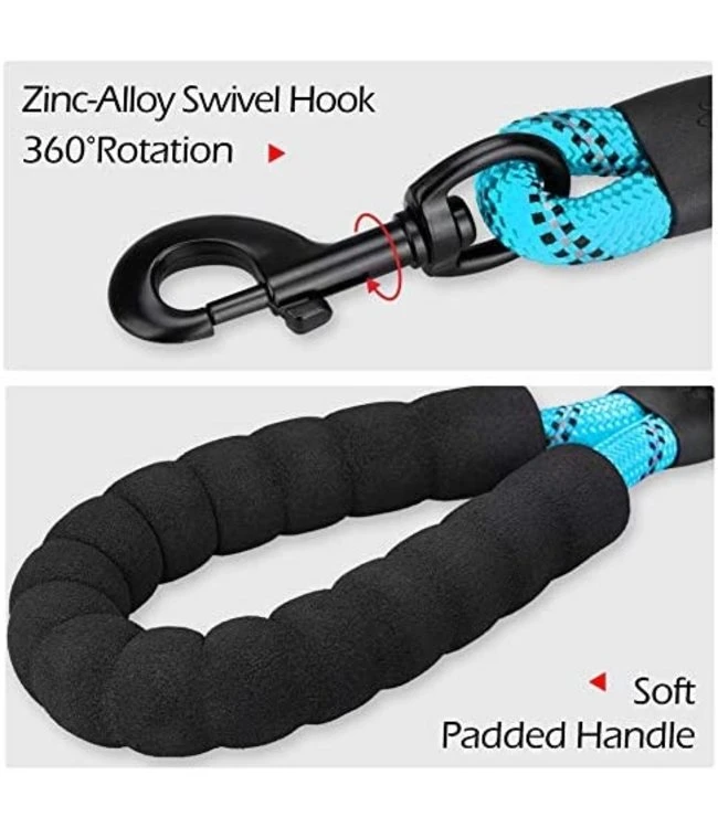 - Gewatteerd handvat: Deze hondenriem heeft een gewatteerd handvat. Het handvat is erg zacht, zodat je je handen niet gaat bezeren.
