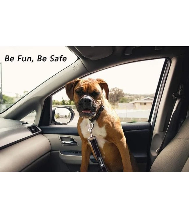 - Functionele geintergreerde auto veiligheids gordel : Er is een auto gordel clip aan deze riem bevestigd, deze hoef je enkel in de autogordel opening te doen en de hond kan veilig mee in de auto