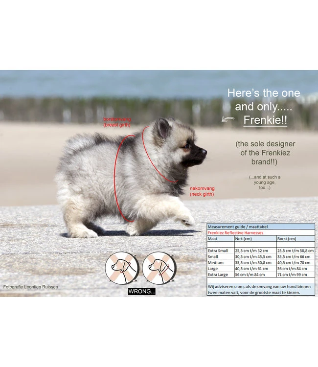 Om er zeker van te zijn dat u de juiste maat voor uw huisdier bestelt, is het belangrijk om het dier goed op te meten. Aan de hand van de onderstaande maattabel kunt u de juiste maat kiezen voor uw hond. Mocht de maat niet goed zijn, mag het tuigje uiteraard omgeruild worden voor een maat groter of kleiner.