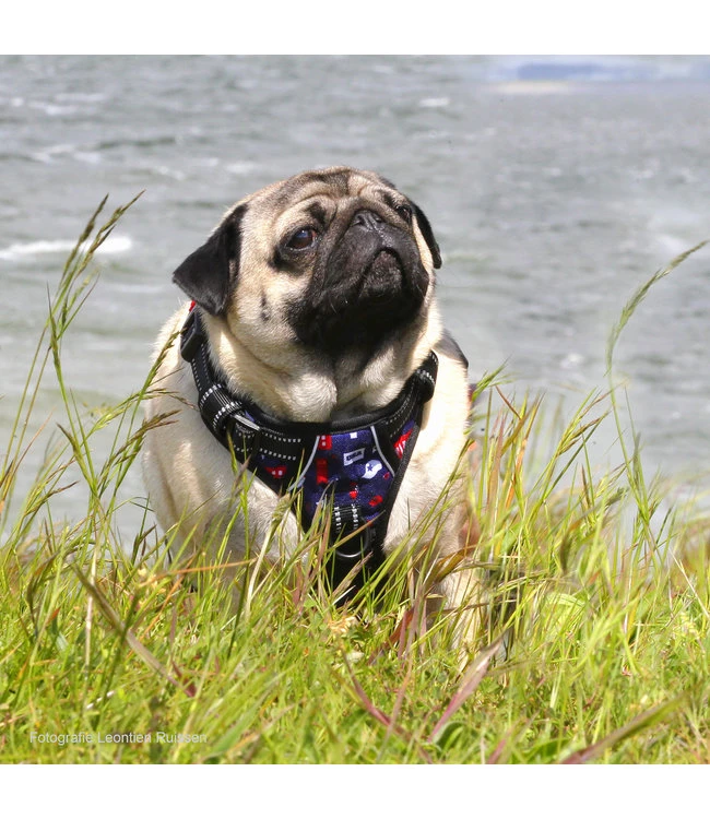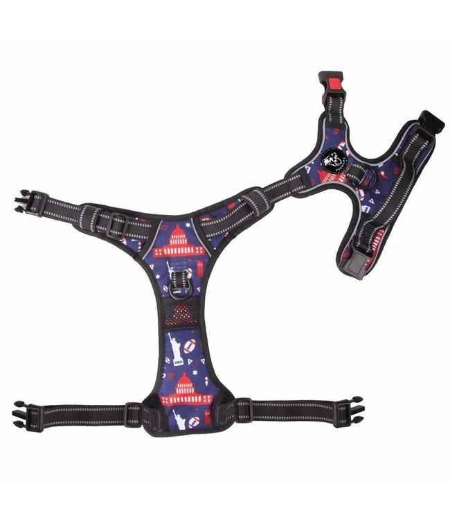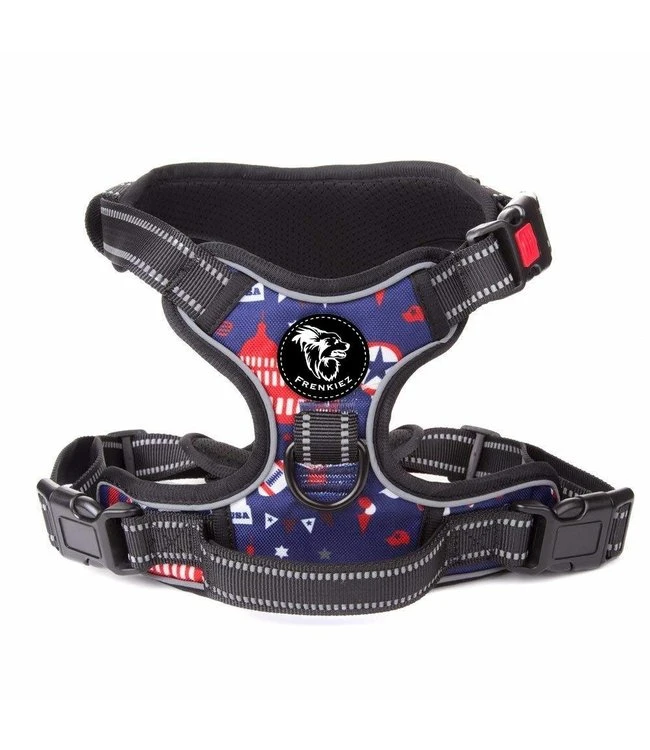 Frenkiez Frenkiez Reflective No Pull Lockable Dog Harness Printing Blue