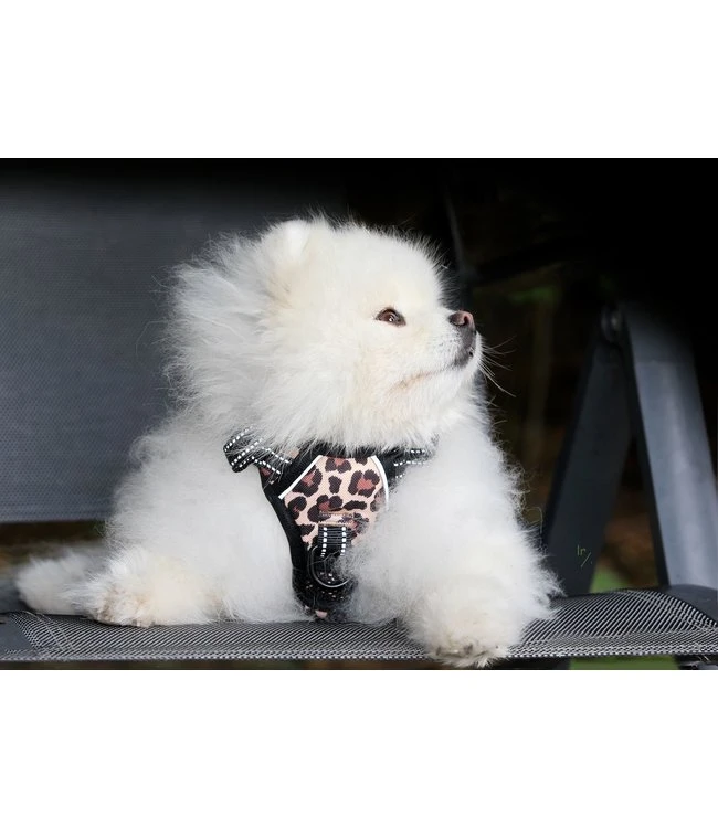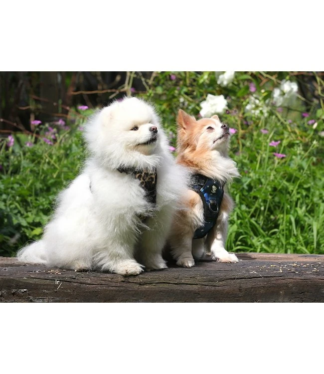 Dit verstelbare harnas heeft 2 handige gespen op de buikriemen en 1 vergrendelbare clip in de nek voor gemakkelijk aan- en uit doen, zonder dat je het over het hoofd van de hond moet doen.