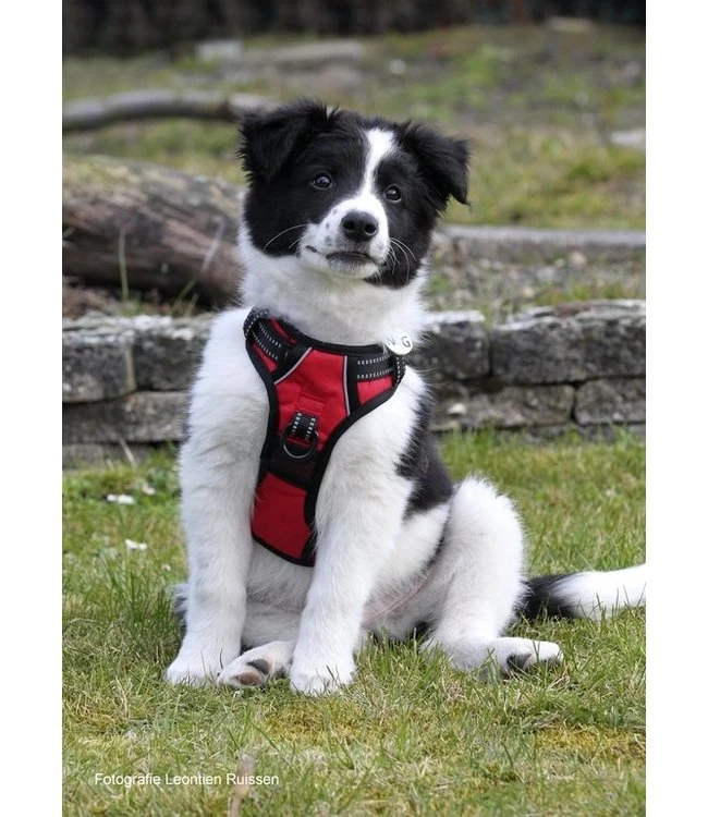 Gevoerde en comfortabele handgreep boven op het tuig, zachte voering zorgt voor een handvat dat goed voelt in de hand voor extra controle om uw hond te begeleiden. Het werkt ook als autogordellus. Reflecterend stiksel met groot oppervlak voor gebruik ’s nachts voor extra zichtbaarheid. Lichtgewicht en duurzaam, ontworpen met minimale massa voor maximale vingergevoeligheid. 3 manieren verstelbare bandjes, het tuig is volledig te verstellen en aan te passen met ruimte voor groei.