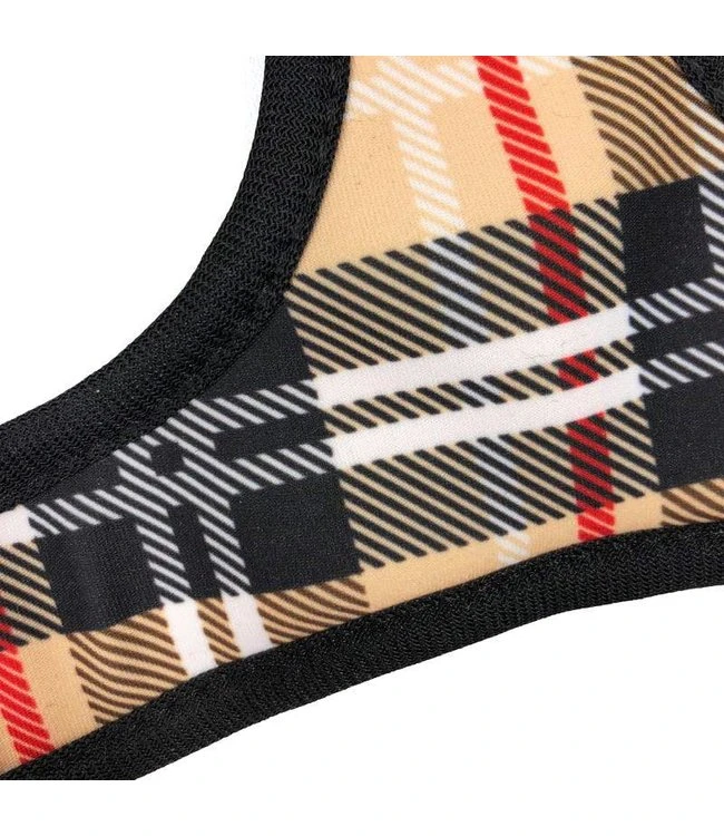 Vergeet niet om de bijpassende lijn, bandana, halsband of autogordel bij dit tuigje te bestellen