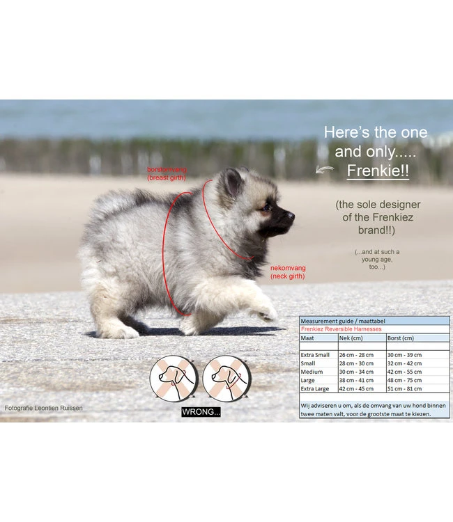 De tuigjes van Frenkiez zijn anders qua maatvoering vergeleken met de andere merken die wij verkopen. Dezelfde maat bestellen heeft dus helaas geen zin.