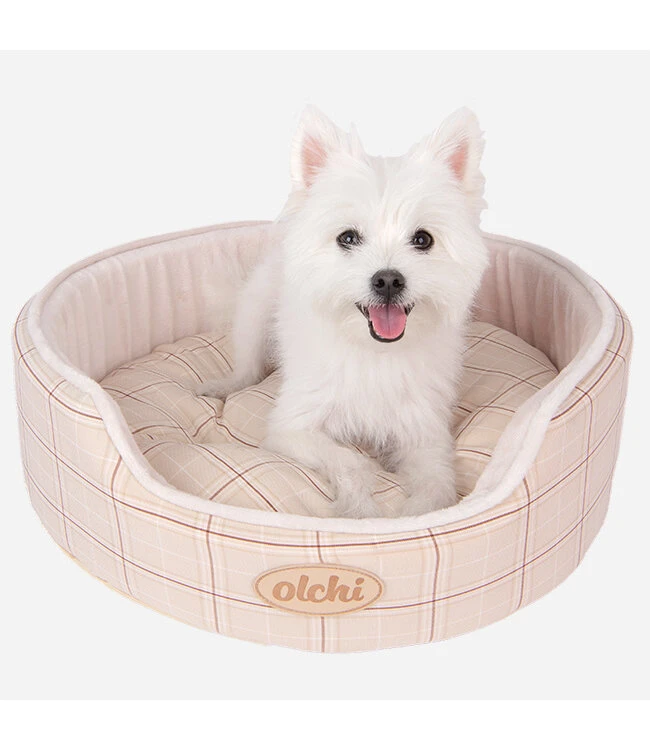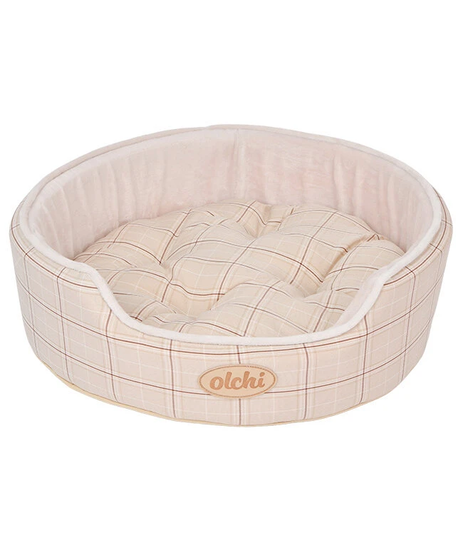Olchi Check Circle Bed hondenmand beige