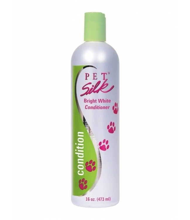 Na de vacht gewassen te hebben met Pet Silk Bright White Shampoo, breng Pet Silk Bright White Conditioner gelijkmatig op en masseer het voor 3 tot 5 minuten grondig in. Spoel de conditioner uit de vacht. Voor het beste resultaat eindigen met een van de Pet Silk finishing producten .