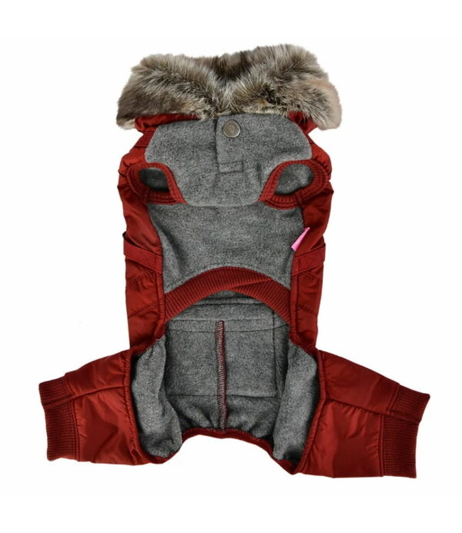 | Features | * Quilted waterproof outer shell with hoodie * Winter hoodie with integrated harness * Decorated with pocket on the back |