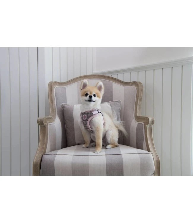 Dit zachte tuigje van polyester is het Da vinci harness model C van Pinkaholic. Een tuigje wat door zijn fijne pasvorm goed aansluit bij de hond . Het harnas is gemaakt van zachte gevoerde stof. Dit maakt het tuig heerlijk warm en ook geschikt voor koudere dagen.Het harnas is geschikt voor kleine hondenrassen. U kunt het Pinkaholic Da Vinci Harness met behulp van de verstelbare riempjes passend maken voor uw hond. Aan de bovenzijde van het tuigje bevindt zich een D-ring waaraan u de lijn aan kunt bevestigen.