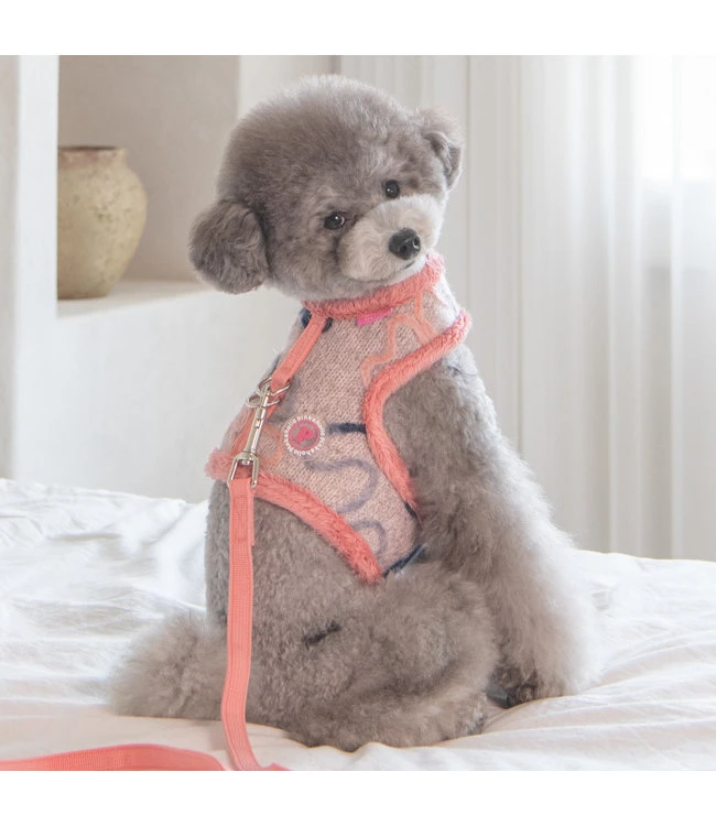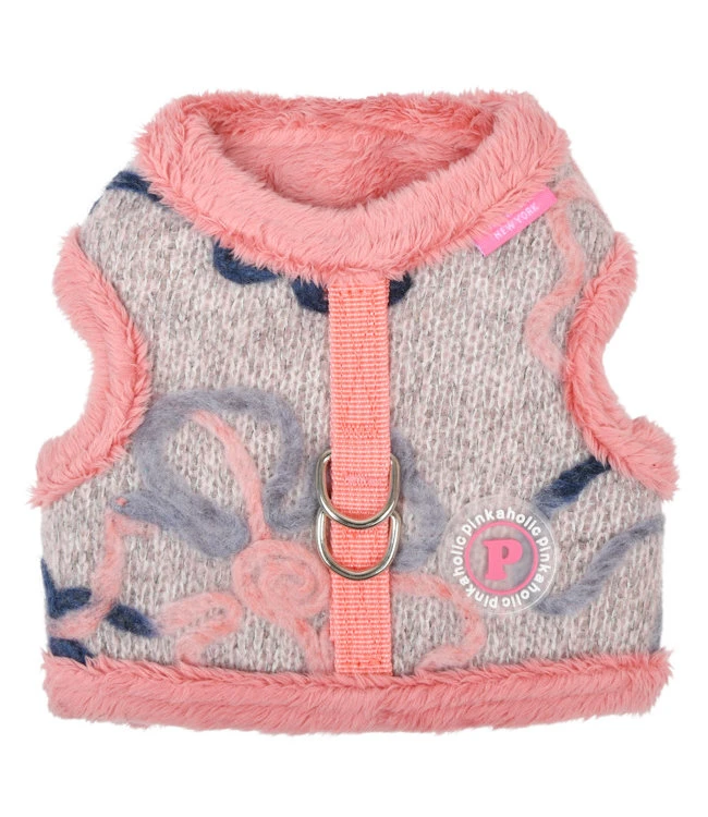 Dit zachte tuigje van polyester en wol is het Freesia Pinka Harness van Pinkaholic. Een tuigje wat door zijn fijne pasvorm goed aansluit bij de hond. Het tuigje gevoerd met warme stof dus geschikt voor in de winter. Het harnas is geschikt voor de wat kleinere hondenrassen . Aan de bovenzijde van het tuigje bevindt zich een D-ring waaraan u de lijn aan kunt bevestigen. Bij tuigjes van model B is het belangrijk dat u de omvang achter de voorpootjes goed op meet. De tuigjes zijn maar een aantal cm te verstellen en gaan niet over het hoofd heen.