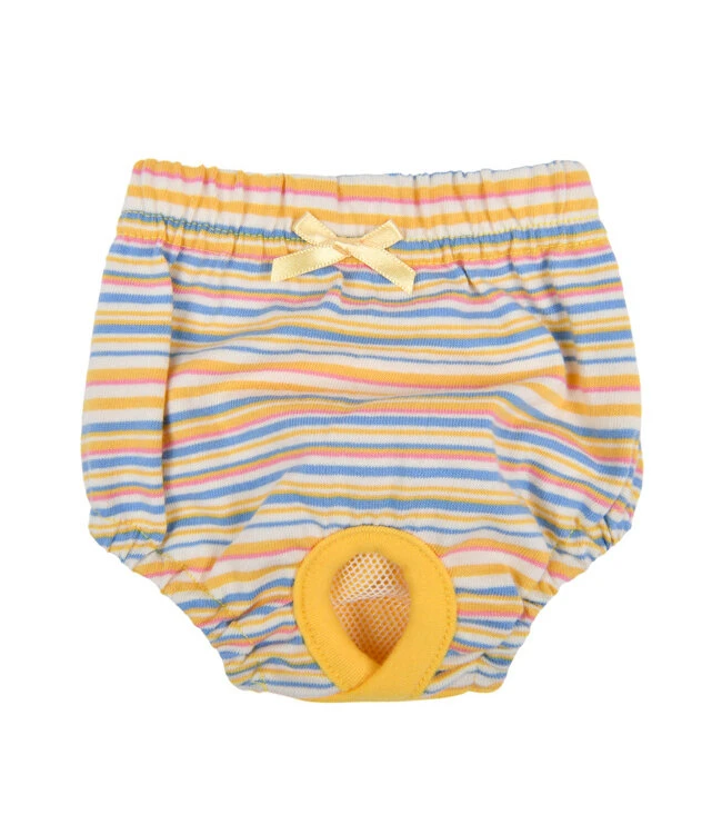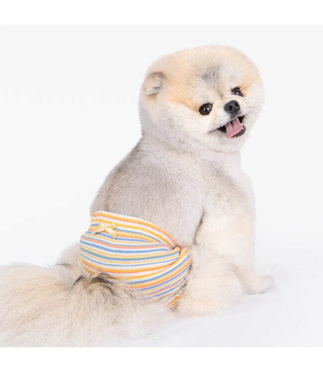Dit zachte loopsheidbroekje van katoen is de Meline sanitary pants van Pinkaholic. Een periodebroekje wat door zijn fijne pasvorm goed aansluit bij de hond . Het loopsheidbroekje is gemaakt van zachte ademende stof. Het broekje is geschikt voor kleine hondenrassen. In het broekje zit een ruimte waar u een op maat geknipt maandverbandje in kunt plaatsen. De taille sluit door het elastiek goed aan, en aan de bovenzijde is er een gat voor de staart.