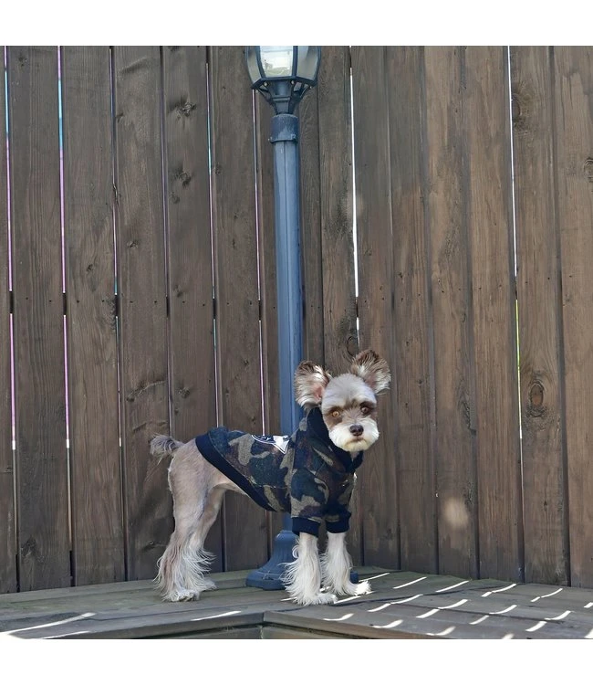 Dit zachte jasje van stevige polyster is de Colonel Hoodie van Puppia. Een trui die door zijn fijne pasvorm goed aansluit bij de hond. Dit maakt de hoodie heerlijk warm en dus geschikt voor in de winter. De hondentrui is voorzien van een capuchon. In de hoodie zit een afgewerkte opening om de riem te bevestigen aan het tuigje of de halsband.