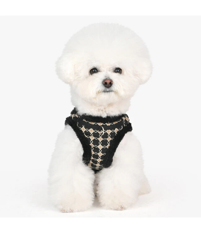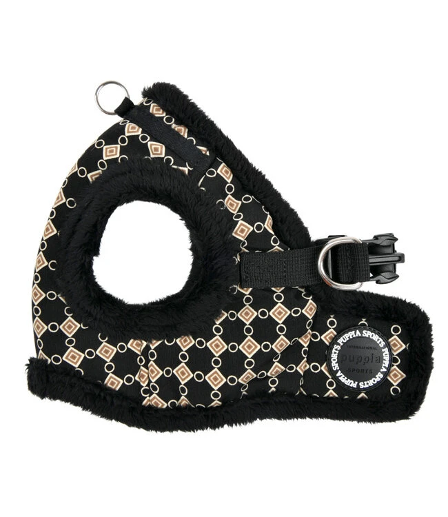 Dit zachte tuigje van polyester is het Jace Vest harness van Puppia. Een tuigje wat door zijn fijne pasvorm goed aansluit bij de hond . Het harnas is gemaakt van zacht materiaal met een warme stof aan de binnenkant. Dit maakt het tuig warm en ook geschikt voor koudere dagen.Het harnas is geschikt voor kleine hondenrassen. . U kunt het Puppia Jace Harness met behulp van de klittenband op de rug passend maken voor uw hond. Aan de bovenzijde van het tuigje bevindt zich een D-ring waaraan u de lijn aan kunt bevestigen. Bij tuigjes van model B is het belangrijk dat u de omvang achter de voorpootjes goed op meet. De tuigjes zijn maar een aantal cm te verstellen en gaan niet over het hoofd heen.