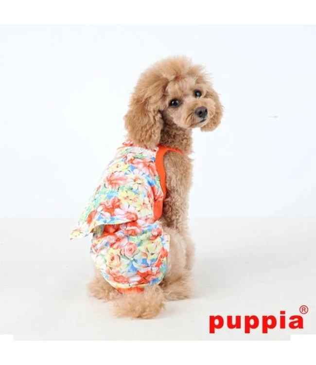 Dit zachte loopsheidbroekje van katoen is de spring garden sanitary pants van Puppia. Een periodebroekje wat door zijn fijne pasvorm goed aansluit bij de hond . Het loopsheidbroekje is gemaakt van zachte ademende stof. Het broekje is geschikt voor kleine hondenrassen. In het broekje zit een ruimte waar u een op maat geknipt maandverbandje in kunt plaatsen. De taille sluit door het elastiek goed aan, en aan de bovenzijde is er een gat voor de staart.
