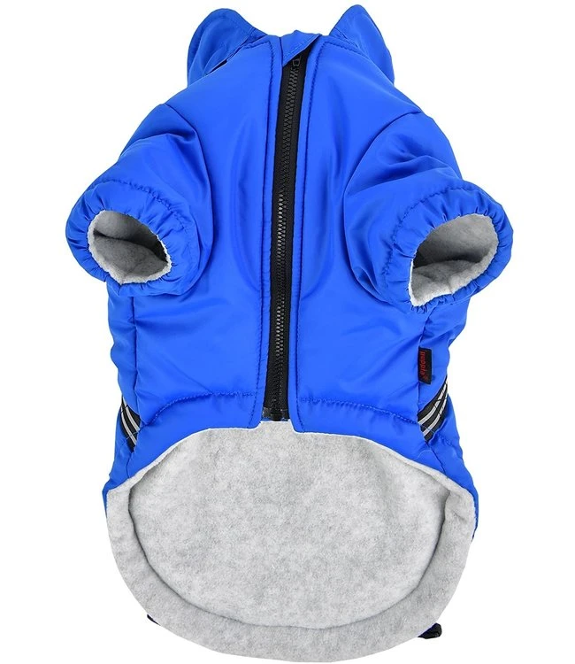 Dit zachte jasje van polyester is het Mallory jacket van Puppia. Een jasje wat door zijn fijne pasvorm goed aansluit bij de hond . Het hondenjasje is gemaakt van soepelvallende gevoerde stof. Dit maakt de hondenjas heerlijk warm en dus geschikt voor in de winter. Het jasje is geschikt voor de wat kleinere hondenrassen . U kunt het Puppia Mallory jacket aan de onderkant sluiten door middel van een rits. Ook heeft dit jasje reflecterende lijnen. Wat een voordeel van dit hondenjasje is, is dat het ook direct als tuigje gebruikt kan worden. Aan de bovenzijde van het jasje bevindt zich een D-ring waaraan u de lijn aan kunt bevestigen.