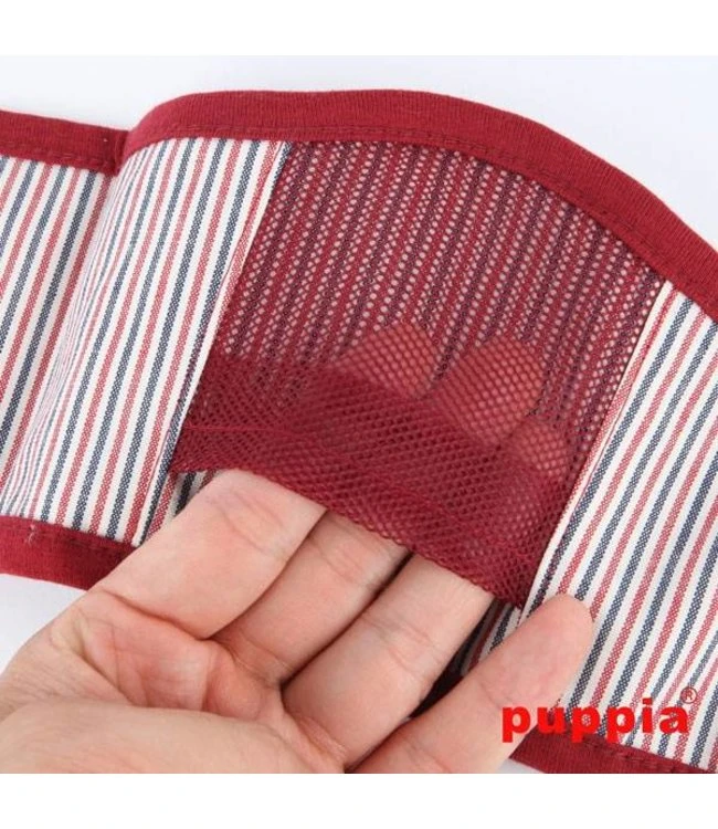 Dit zachte plasbandje van katoen is de Vogue manner band van Puppia. Een plasbandje wat door zijn fijne pasvorm goed aansluit bij de hond . Het plasbandje is gemaakt van zachte ademende stof. De manner band is geschikt voor kleine hondenrassen. In het plasbandje zit een ruimte waar u een op maat geknipt maandverbandje in kunt plaatsen. De manner band is een fijn product voor reutjes die markeren, of reutjes die nog niet helemaal zindelijk zijn. Het is een prettig idee om een manner band om te doen bij reutje die markeren, zeker wanneer ze mee op visite gaan. Het plasbandje is te sluiten door klittenband boven op de rug, let wel op dat hij niet te strak zit in verband met de hygiëne en het draag comfort voor de hond.