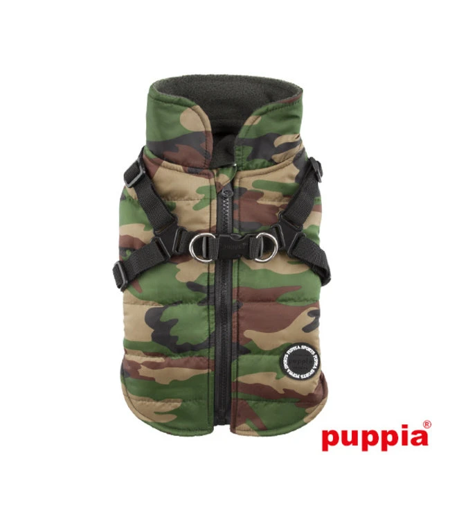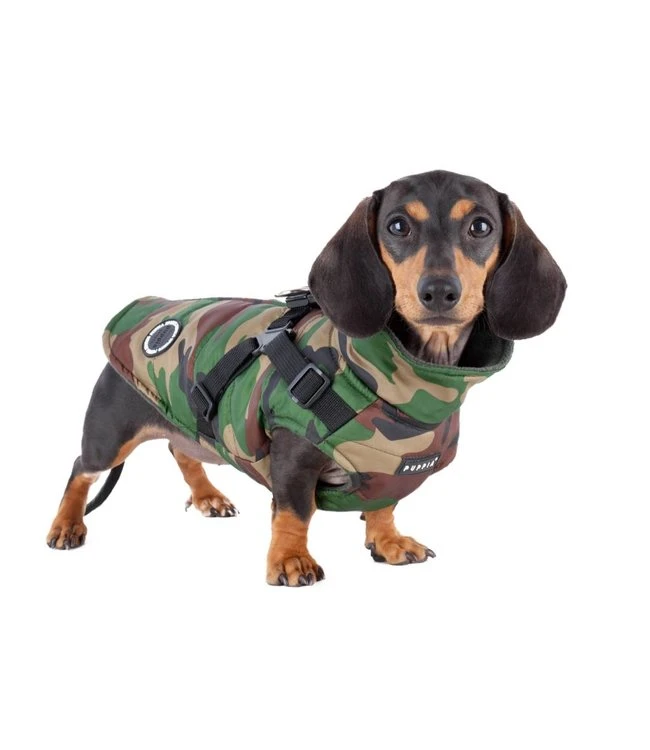Dit zachte jasje van polyester is het Mountaineer jacket van Puppia. Een jasje wat door zijn fijne pasvorm goed aansluit bij de hond . Het hondenjasje is gemaakt van soepelvallende gevoerde stof. Dit maakt de hondenjas heerlijk warm en dus geschikt voor in de winter. Het jasje is geschikt voor de wat kleinere hondenrassen . U kunt het Puppia Mountaineer jacket aan de bovenkant sluiten door middel van een rits. Dit is erg handig vergeleken met bijvoorbeeld drukknopjes aan de onderkant. Wat een voordeel van dit hondenjasje is, is dat het ook direct als tuigje gebruikt kan worden. Aan de bovenzijde van het jasje bevindt zich een D-ring waaraan u de lijn aan kunt bevestigen.