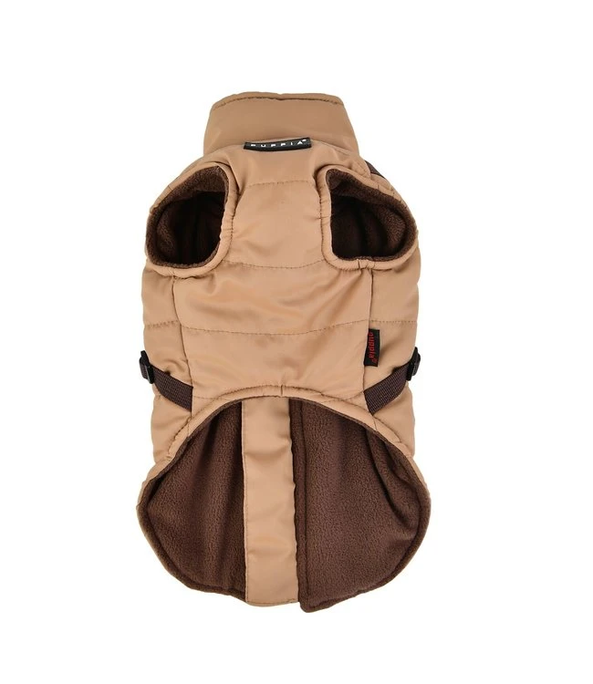 Dit zachte jasje van polyester is het Mountaineer jacket van Puppia. Een jasje wat door zijn fijne pasvorm goed aansluit bij de hond . Het hondenjasje is gemaakt van soepelvallende gevoerde stof. Dit maakt de hondenjas heerlijk warm en dus geschikt voor in de winter. Het jasje is geschikt voor de wat kleinere hondenrassen . U kunt het Puppia Mountaineer jacket aan de bovenkant sluiten door middel van een rits. Dit is erg handig vergeleken met bijvoorbeeld drukknopjes aan de onderkant. Wat een voordeel van dit hondenjasje is, is dat het ook direct als tuigje gebruikt kan worden. Aan de bovenzijde van het jasje bevindt zich een D-ring waaraan u de lijn aan kunt bevestigen.