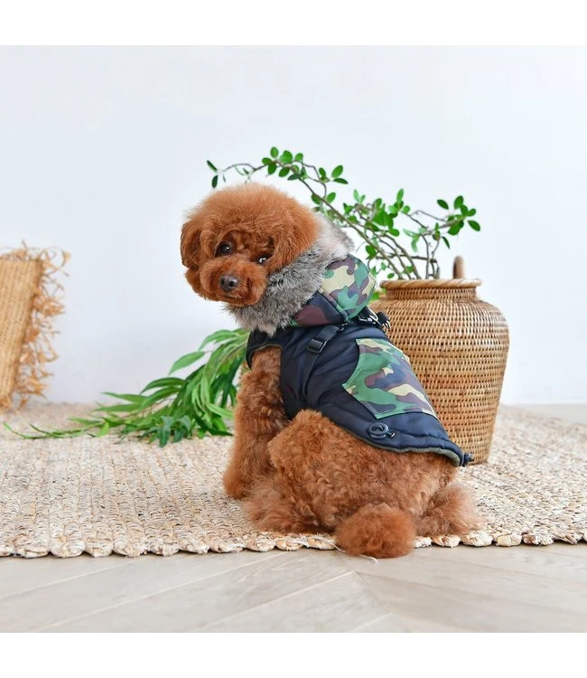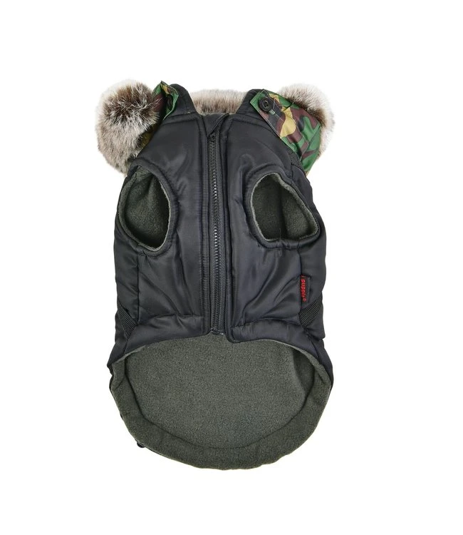 Dit zachte jasje van polyester is het Orson jacket van Puppia. Een jasje wat door zijn fijne pasvorm goed aansluit bij de hond . Het hondenjasje is gemaakt van soepelvallende gevoerde stof. Dit maakt de hondenjas heerlijk warm en dus geschikt voor in de winter. Het jasje is geschikt voor de wat kleinere hondenrassen . U kunt het Puppia Orson jacket aan de onderkant sluiten door middel van een rits. Dit is erg handig vergeleken met bijvoorbeeld drukknopjes. Wat een voordeel van dit hondenjasje is, is dat het ook direct als tuigje gebruikt kan worden. Aan de bovenzijde van het jasje bevindt zich een D-ring waaraan u de lijn aan kunt bevestigen.