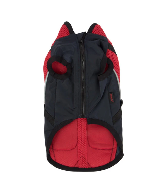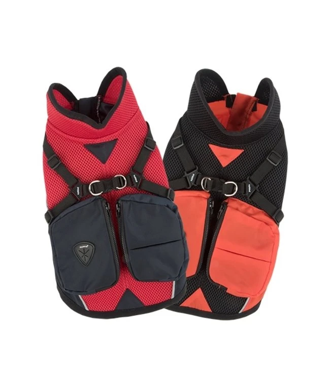 Dit stevige jasje van polyester is het P2 jacket van Puppia. Een jasje wat door zijn fijne pasvorm goed aansluit bij de hond. Het hondenjasje is gemaakt van soepelvallende gevoerde airmeshstof. Dit maakt de hondenjas heerlijk luchtig en dus geschikt voor in de gure herfst en lentedagen. U kunt het Puppia P2 jacket aan de onderkant sluiten door middel van een rits. Dit is erg handig vergeleken met bijvoorbeeld drukknopjes aan de onderkant. Wat een voordeel van dit hondenjasje is, is dat het ook direct als tuigje gebruikt kan worden. Aan de bovenzijde van het jasje bevindt zich een D-ring waaraan u de lijn aan kunt bevestigen.