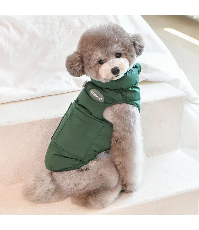 Het Puppia Puffer Vest Jumper is verkrijgbaar in de kleur: Brown & Green