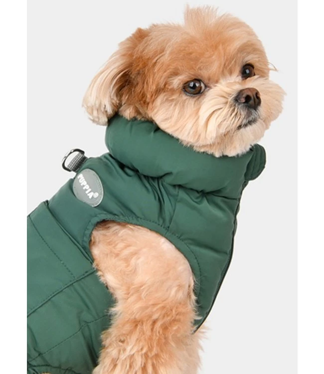Dit waterproof jasje van Nylon is de Puffer Vest Jumper van Puppia. Een jasje wat door zijn fijne pasvorm goed aansluit bij de hond. Het hondenjasje is gemaakt van soepelvallende gevoerde stof. Dit maakt de hondenjas heerlijk warm en dus geschikt voor in de winter. Het jasje is geschikt voor de wat kleinere en middelgrote hondenrassen. U kunt de Puppia Puffer Vest Jumper aan de onderkant sluiten door middel van een rits. Wat een voordeel van dit hondenjasje is, is dat het ook direct als tuigje gebruikt kan worden. Aan de bovenzijde van het jasje bevindt zich een D-ring waaraan u de lijn aan kunt bevestigen.