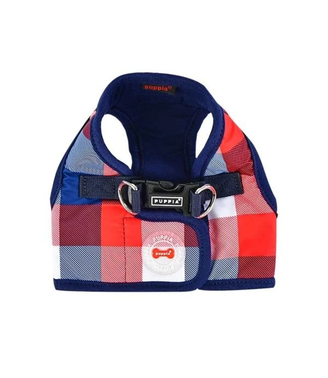 | ★ Features | * New vest style harness as “Harness B” * Checkered pattern and solid schemed * Adjustable chest with a buckle and straps * Coordinated with PATA-AL1704 * PUPPIA SMART TAG pendant(QR Code only) is included |