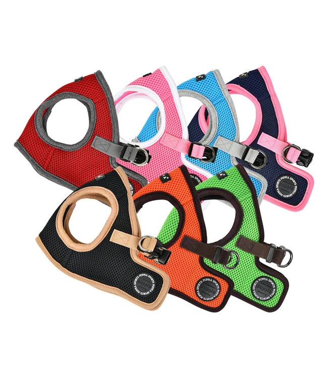 Het Puppia Soft Harness II is verkrijgbaar in verschillende kleuren: Wine, Pink, Sky blue, Navy, Black, Green & Orange