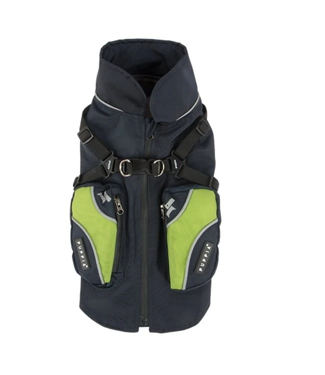 Dit stevige jasje van polyester is het Teton jacket van Puppia. Een jasje wat door zijn fijne pasvorm goed aansluit bij de hond . Het hondenjasje is gemaakt van soepelvallende gevoerde stof. Dit maakt de hondenjas heerlijk warm en dus geschikt voor in de winter. Het jasje is geschikt voor de wat kleinere hondenrassen . U kunt het Puppia Teton jacket aan de bovenkant sluiten door middel van een rits. Dit is erg handig vergeleken met bijvoorbeeld drukknopjes aan de onderkant. Wat een voordeel van dit hondenjasje is, is dat het ook direct als tuigje gebruikt kan worden. Aan de bovenzijde van het jasje bevindt zich een D-ring waaraan u de lijn aan kunt bevestigen.