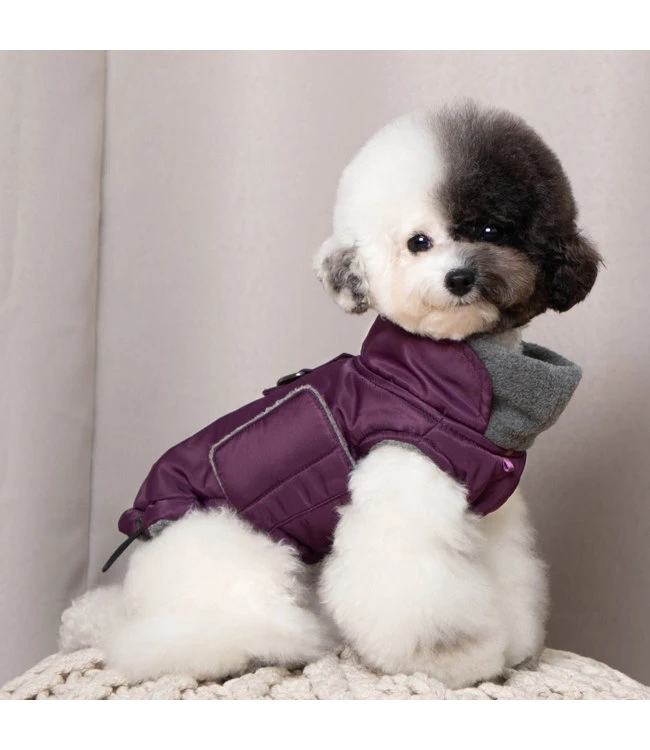 Dit zachte jasje van polyester is het Tomas jacket van Puppia. Een jasje wat door zijn fijne pasvorm goed aansluit bij de hond. Het hondenjasje is gemaakt van soepelvallende gevoerde stof. Dit maakt de hondenjas heerlijk warm en dus geschikt voor in de winter. Het jasje is waterafstotend dus ook geschikt voor regenachtig weer. Het jasje is geschikt voor de wat kleinere en middelgrote hondenrassen. U kunt het Puppia Tomas jacket aan de onderkant sluiten door middel van klittenband. Dit is erg handig vergeleken met bijvoorbeeld drukknopjes aan de onderkant. Wat een voordeel van dit hondenjasje is, is dat het ook direct als tuigje gebruikt kan worden. Aan de bovenzijde van het jasje bevindt zich een D-ring waaraan u de lijn aan kunt bevestigen.