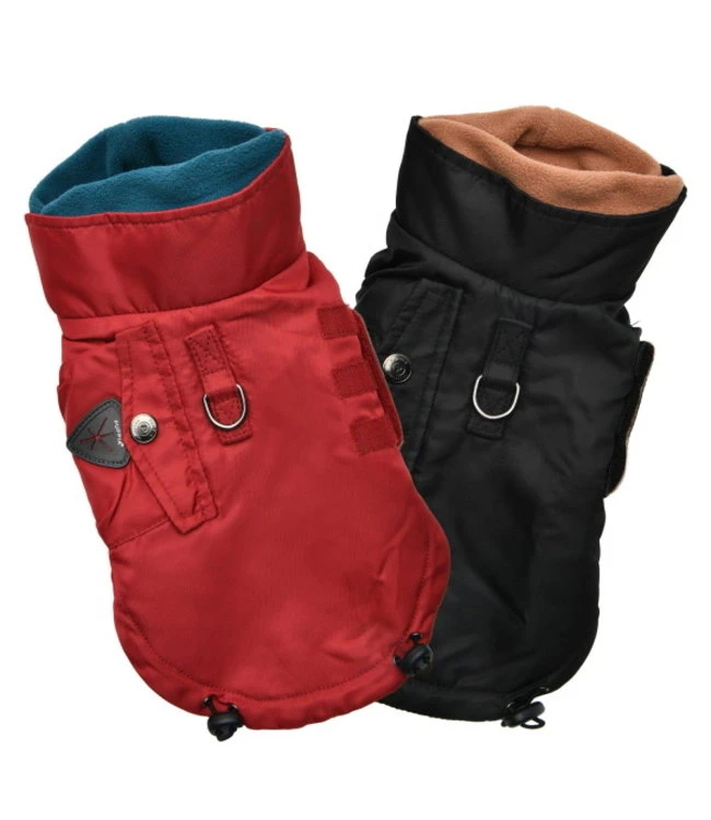 Dit zachte jasje van polyester is het Tomas jacket van Puppia. Een jasje wat door zijn fijne pasvorm goed aansluit bij de hond. Het hondenjasje is gemaakt van soepelvallende gevoerde stof. Dit maakt de hondenjas heerlijk warm en dus geschikt voor in de winter. Het jasje is waterafstotend dus ook geschikt voor regenachtig weer. Het jasje is geschikt voor de wat kleinere en middelgrote hondenrassen. U kunt het Puppia Tomas jacket aan de onderkant sluiten door middel van klittenband. Dit is erg handig vergeleken met bijvoorbeeld drukknopjes aan de onderkant. Wat een voordeel van dit hondenjasje is, is dat het ook direct als tuigje gebruikt kan worden. Aan de bovenzijde van het jasje bevindt zich een D-ring waaraan u de lijn aan kunt bevestigen.