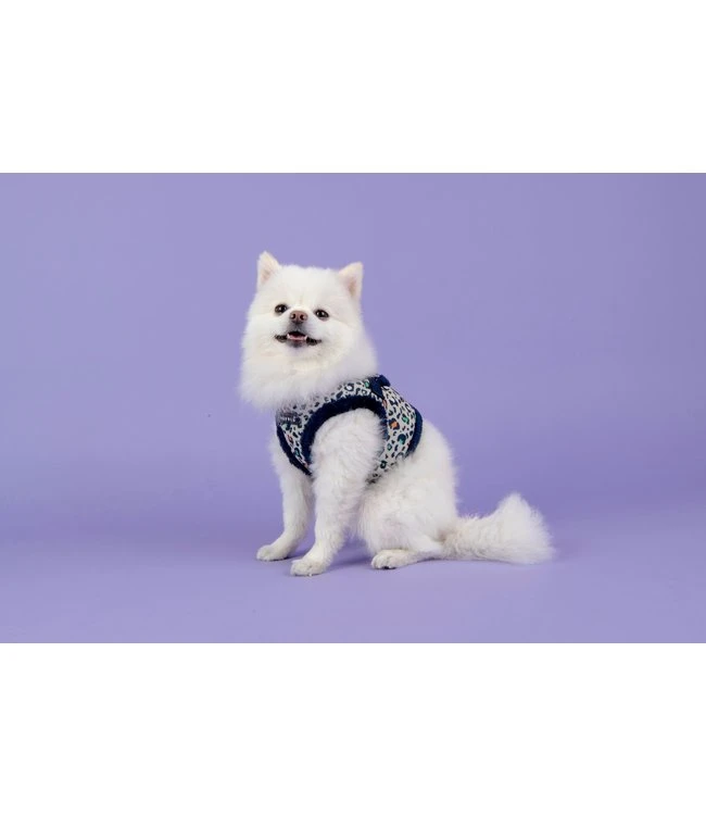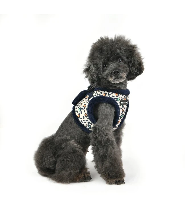 Dit zachte tuigje van polyester is het Elyse Harness van Puppia. Een tuigje wat door zijn fijne pasvorm goed aansluit bij de hond. Het tuigje is gevoerd met warme stof en daarom dus geschikt voor in de winter. Het harnas is geschikt voor de wat kleinere hondenrassen . Aan de bovenzijde van het tuigje bevindt zich een D-ring waaraan u de lijn aan kunt bevestigen. Bij tuigjes van model B is het belangrijk dat u de omvang achter de voorpootjes goed op meet. De tuigjes zijn maar een aantal cm te verstellen en gaan niet over het hoofd heen.