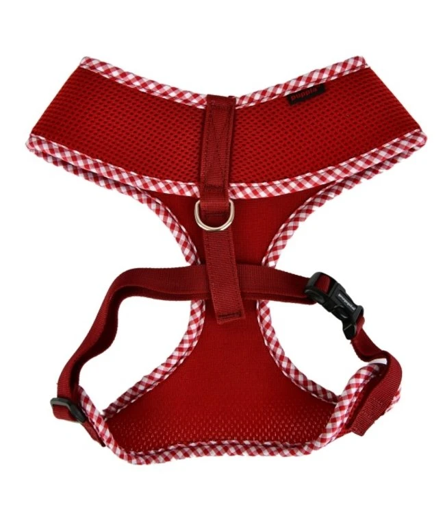 Dit zachte tuigje van polyester is het Vivien Check Harness van Puppia. Een tuigje wat door zijn fijne pasvorm goed aansluit bij de hond . Het harnas is gemaakt van soepelvallende airmesh materiaal. Dit maakt het tuig luchtdoorlatend dus geschikt voor in de zomer en winter. Het harnas is geschikt voor de wat kleinere hondenrassen . U kunt het Puppia Vivien Check Harness met behulp van de verstelbare buikriem passend maken voor uw hond. Aan de bovenzijde van het tuigje bevindt zich een D-ring waaraan u de lijn aan kunt bevestigen.