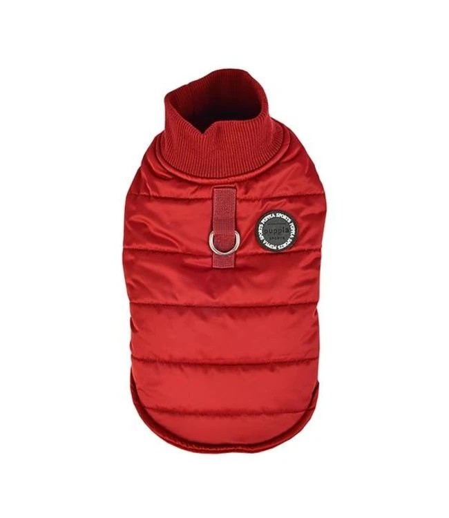Dit zachte jasje van polyester is het Wagner jacket van Puppia. Een jasje wat door zijn fijne pasvorm goed aansluit bij de hond . Het hondenjasje is gemaakt van soepelvallende gevoerde stof. Dit maakt de hondenjas heerlijk warm en dus geschikt voor in de winter. Het jasje is geschikt voor de wat kleinere hondenrassen . U kunt het Puppia Wagner jacket aan de zijkant sluiten door middel van een rits. Dit is erg handig vergeleken met bijvoorbeeld drukknopjes aan de onderkant. Wat een voordeel van dit hondenjasje is, is dat het ook direct als tuigje gebruikt kan worden. Aan de bovenzijde van het jasje bevindt zich een D-ring waaraan u de lijn aan kunt bevestigen.