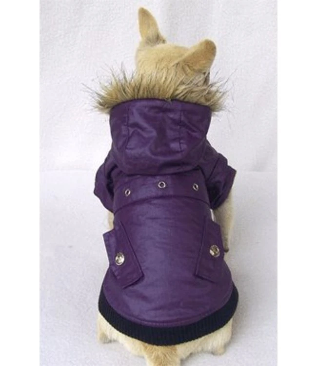 Heerlijk warm en waterafstotend jasje. Heeft een capuchon met nep – bontkraagje. Is gevoerd met een warm en zachte stof. Sluiting door middel van drukknoopjes.