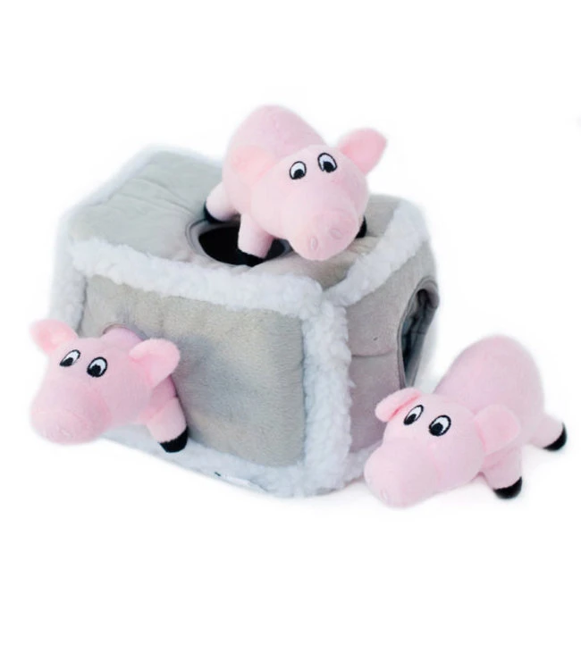 Uw hond zal zo blij zijn als een varken in de modder terwijl hij zoekt naar de piepende boerderijdieren die zich verstoppen in de Zippy Burrow Pig Pen! Zodra je speelse pup ze allemaal heeft, smeken ze je om ze er keer op keer weer in te doen voor urenlang plezier! Het is het perfecte interactieve speeltje om uw hond bezig te houden dat verveling voorkomt en mentale stimulatie bevordert!